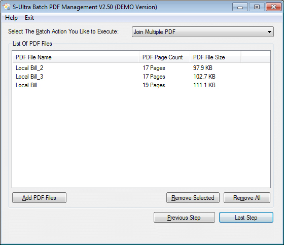 - Join multiple PDF files into a singe PDF file.