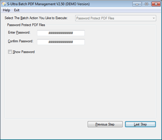 - Provide password protection in a batch.