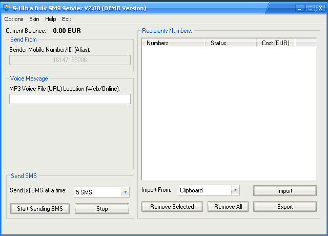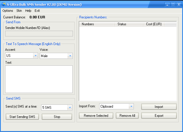 - Supports voice SMS sending (Text To Speech/ MP3 File)